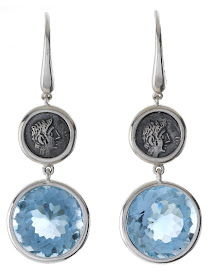 Aquamarine and Roman coin replica earrings by the 1884 Collection.